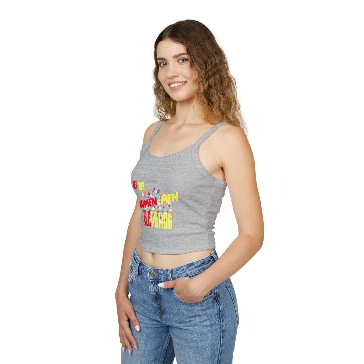 Women Belong Here Crop Tank Top — Empowerment Graphic Spaghetti Strap