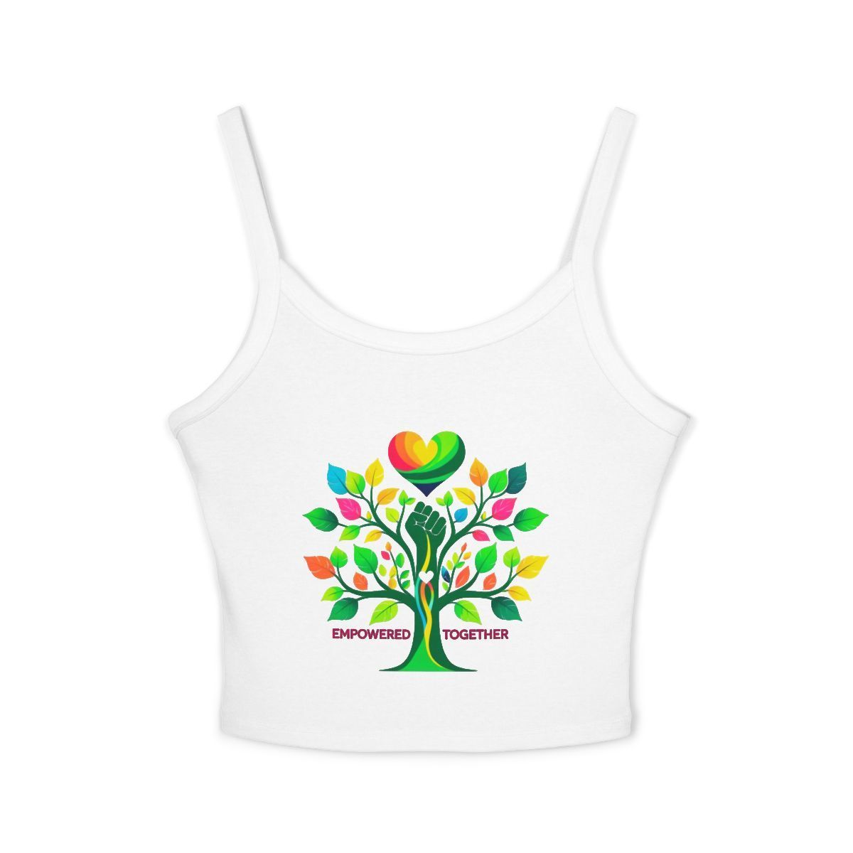 Women's Spaghetti Strap Tank Top, Empowering Together, Summer Wear, Eco-Friendly Apparel, Yoga Top, Festival Clothing
